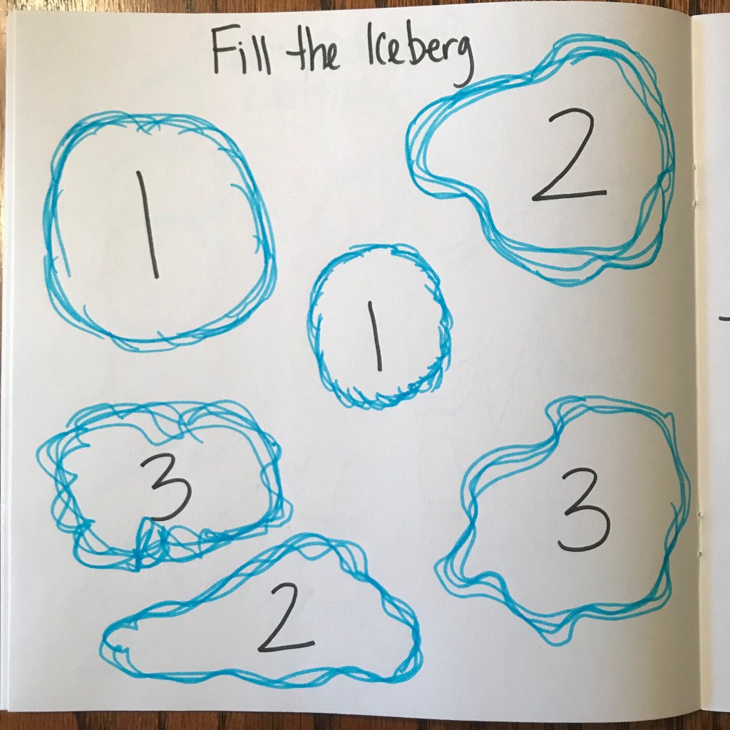 One of our focuses this winter will be working on numbers 1-5. E is able to count to 20, which is great, but I really want to work on her one to one correspondence skills, visual representation skills, and subsitizing with just numbers 1-5. We’re starting slowly with 1-3. Using the white unifix cubes or our arctic animals E will fill each iceberg with the correct number of objects. This will help her to connect value to a number.