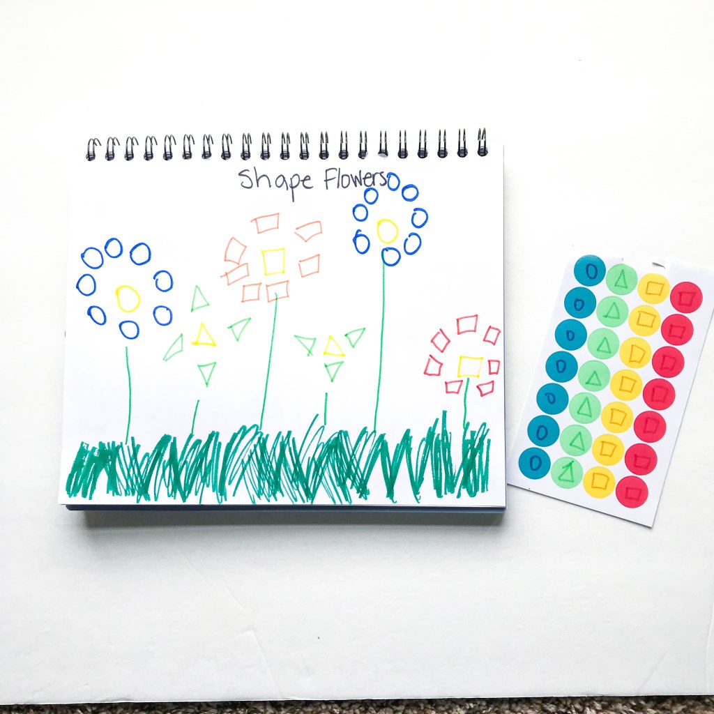 I have seen so many versions of this page! You could make this for names, sight words, or numbers. For I we’re working on matching and naming shapes. Like I said earlier, she is very motivated by stickers!