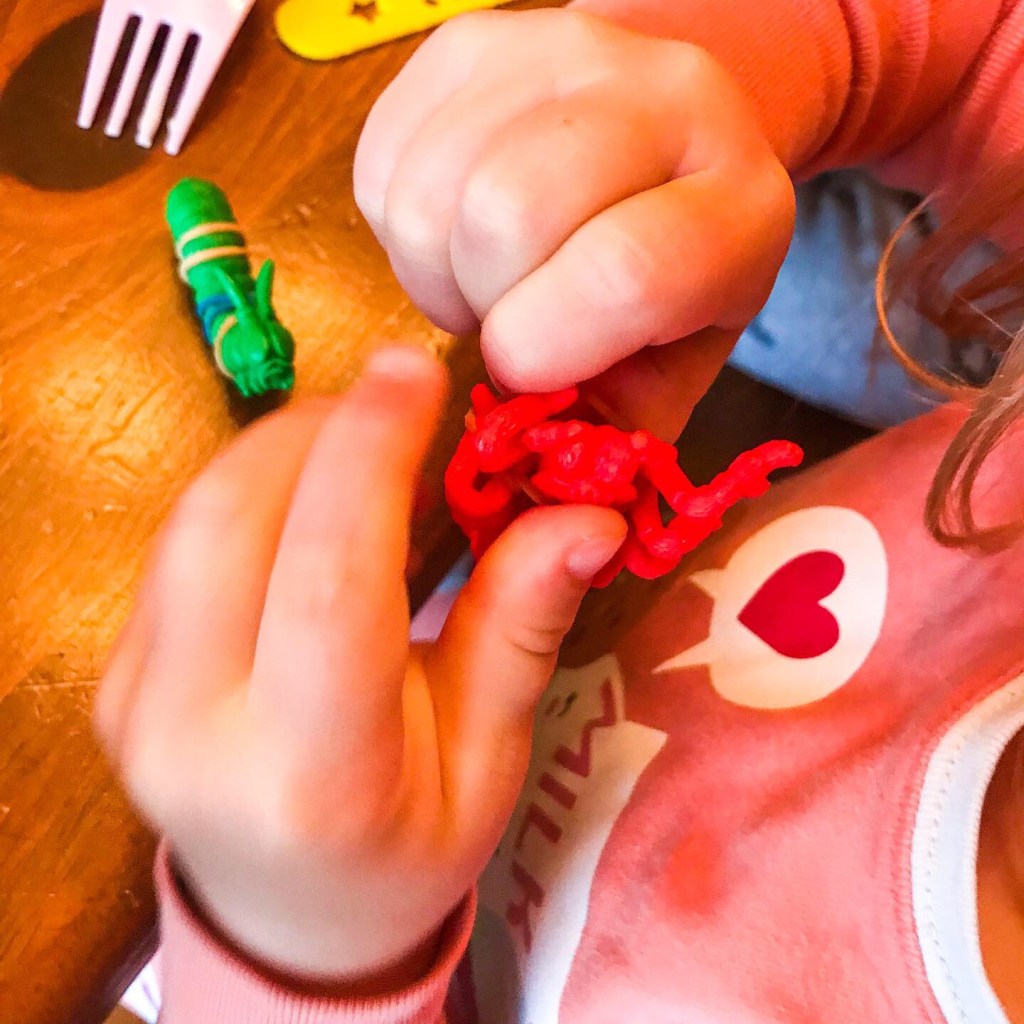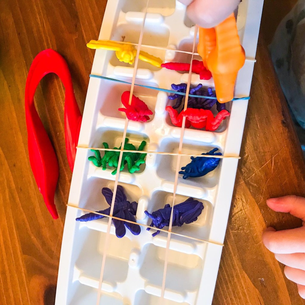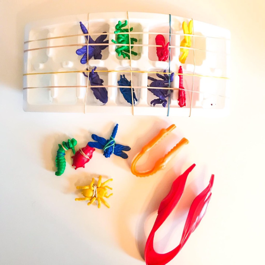 Wrapping rubber bands around the bugs allowed my buddies to really work the tiny finger muscles!