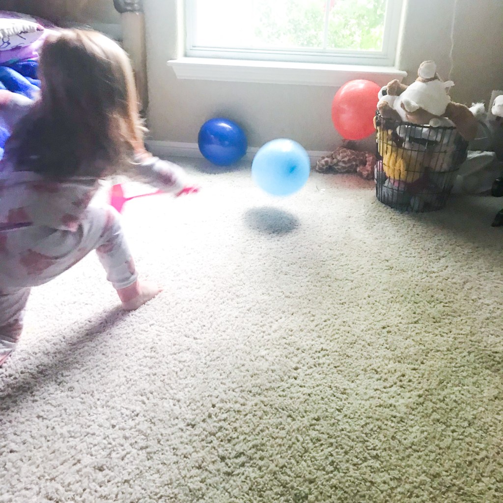 I was going to turn these balloons into bugs, but the kids didn’t give me any chance to do that! Who knew that balloons and a fly swatter would be so fun and worth while! All the gross motor needs like tossing, striking, and hand eye coordination are being used during a simple game of Swat the Bug.