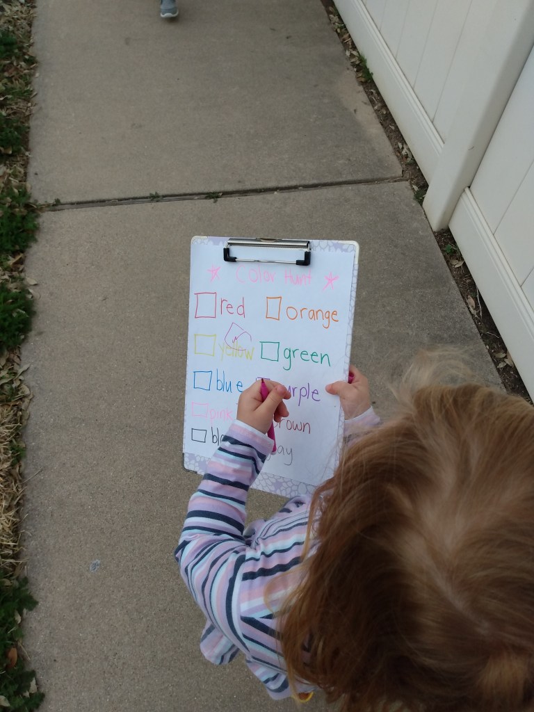 We love adding fun scavenger hunts to our walks. I threw this together so fast. You can also google some real cute ones!