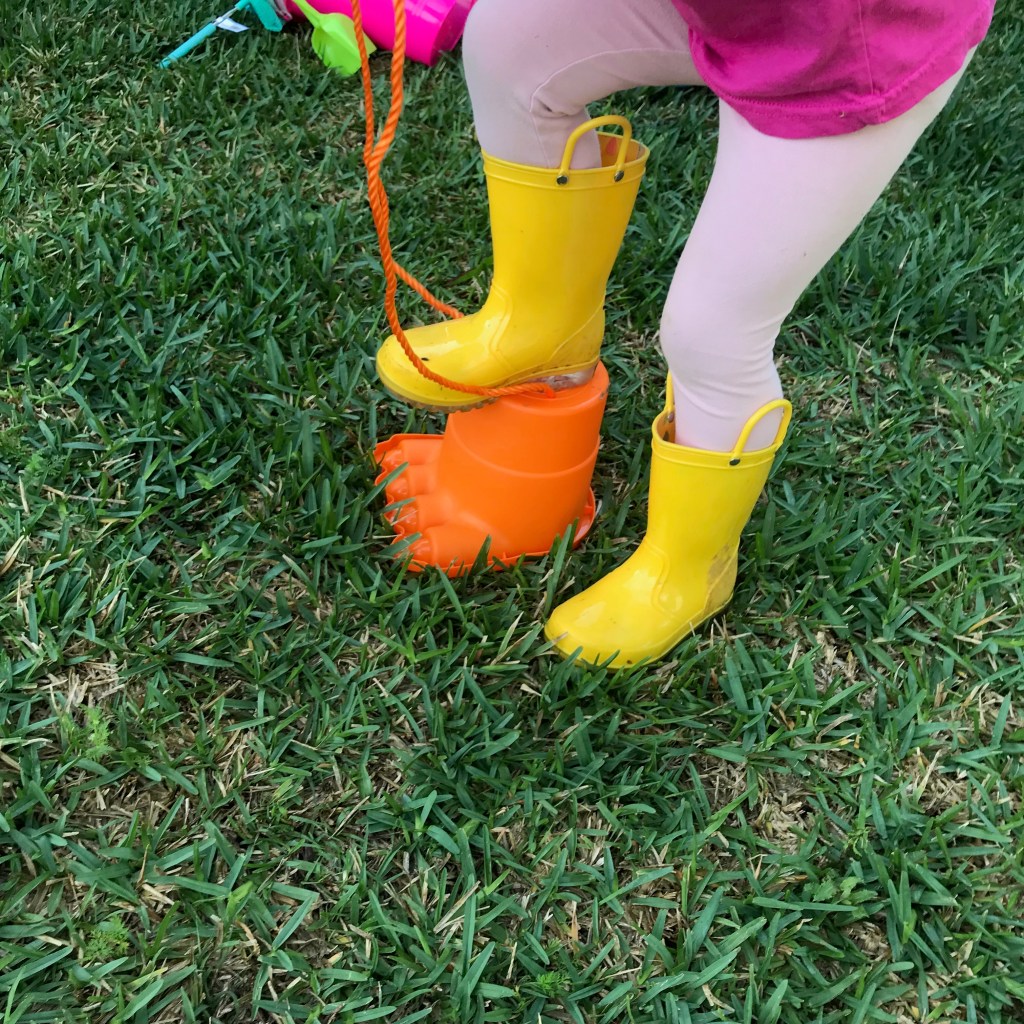 These monster feet stilts were such an awesome find at 5 Below. All the elementary school gym vibes! This is such a great way for your older toddler to explore herself in space plus using max effort helps grow those muscles.