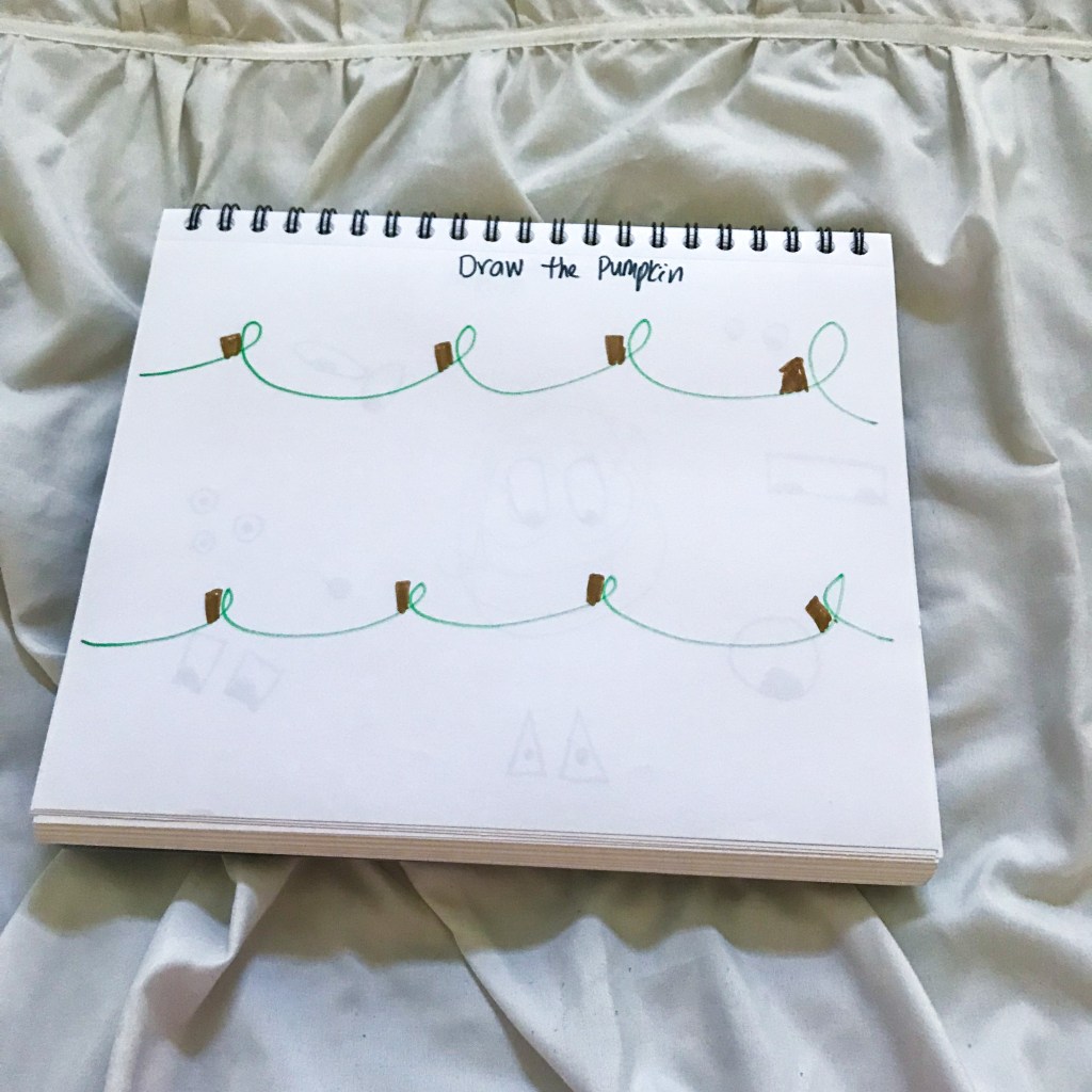Using the brown stem as a guide, the kids will draw their own pumpkin. We tried this page last year to some success. I’m excited to see what crazy pumpkins they will make this time around!