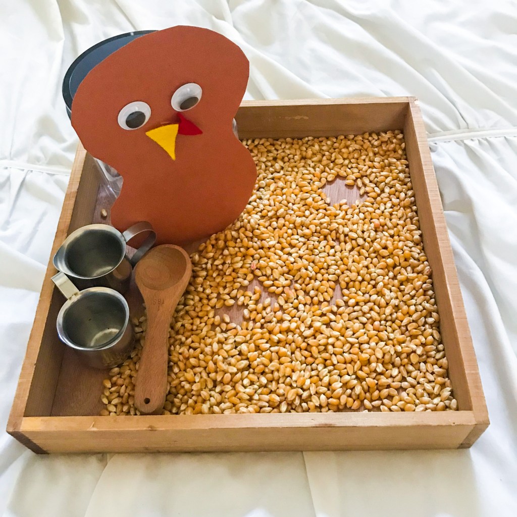 Speaking of stuffing turkeys! The kids have been besides themselves pouring and scooping corn into the turkey. The sound is probably their favorite part!