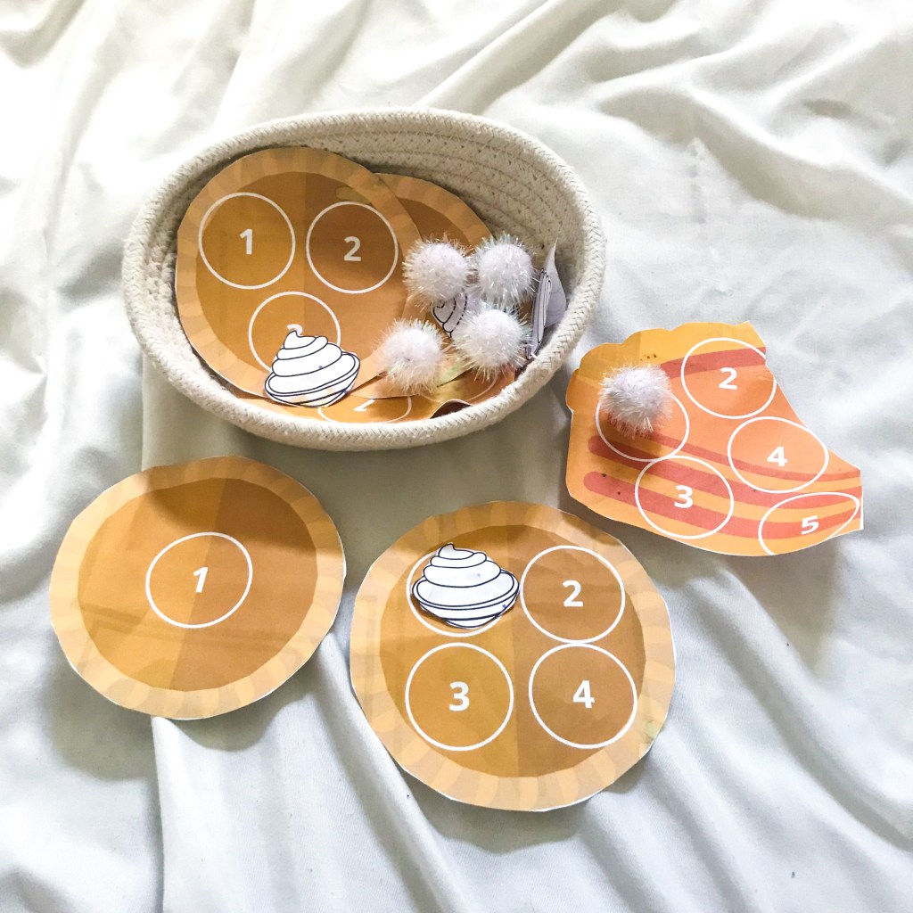 Who doesn’t love pumpkin pie covered in whipped cream?! I created these count and cover pies last year. (Printable available here!)
