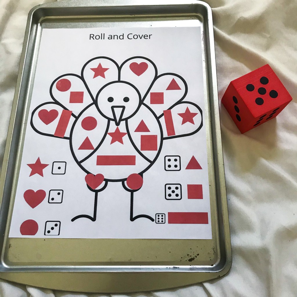 I love this button turkey so much which is why I’m sharing him first! You could use this as a color match activity or just for fine motor practice. You could present this with feathers on or off depending on your child’s skill level.
