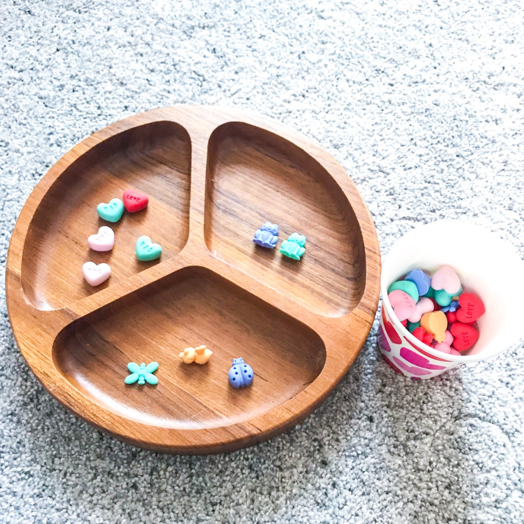 We love a good sorting tray! You can make them for colors, sizes, and shapes.