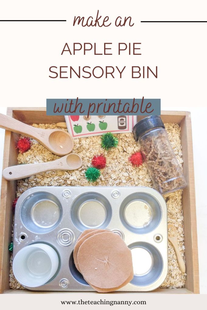 At the start of the month, our homeschool co-op read the book How to Bake an Apple Pie and See the World. We talked and explored all things apple for an entire day finishing off with this adorable sensory bin.