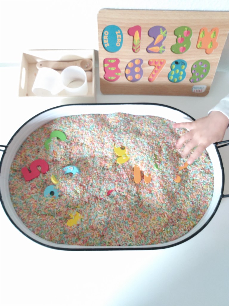 A rice bin is essentially a container filled with rice that serves as a tactile playground for toddlers. It’s a hands-on activity that provides endless opportunities for exploration, imagination, and skill-building. With a few added tools and toys, a rice bin becomes an educational and entertaining sensory experience.