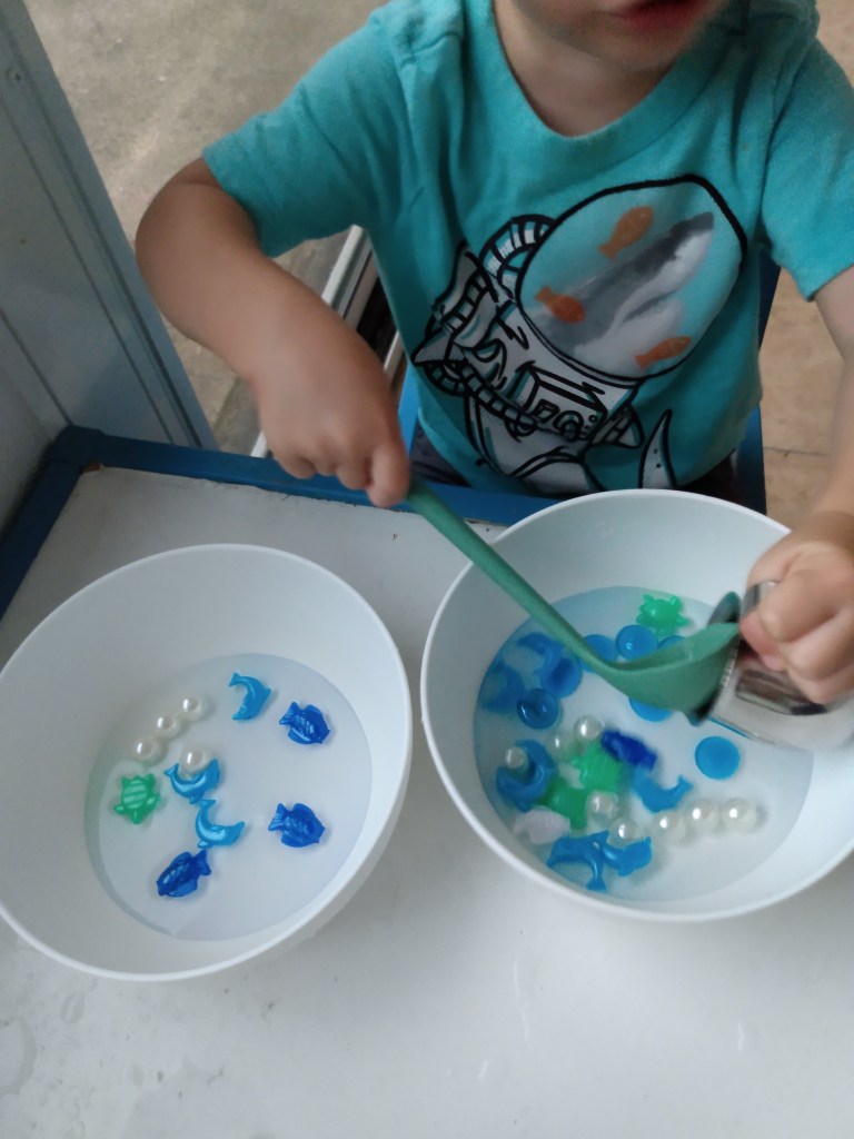 - Use Age-Appropriate Containers: Shallow bins, kiddie pools, or even a large baking dish can work well.