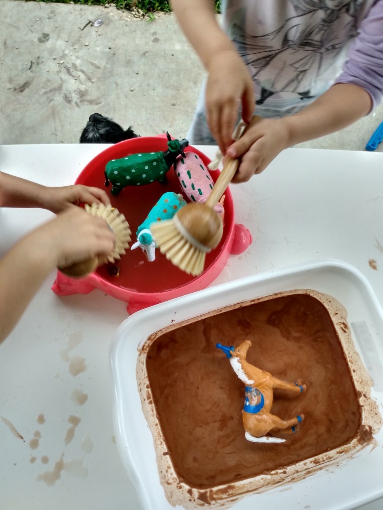 - Set up a “car wash” or “doll spa” with a tub of soapy water and sponges.
